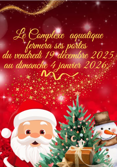 Le complexe aquatique sera fermé du vendredi... Le complexe aquatique sera fermé du vendredi 19 décembre 2025 au dimanche...